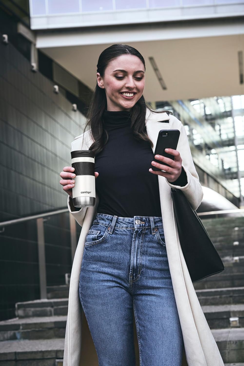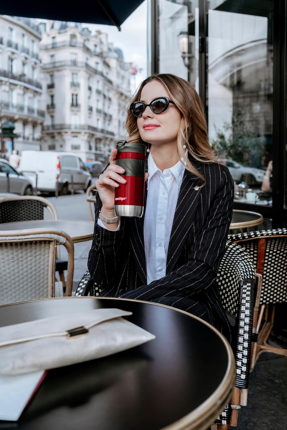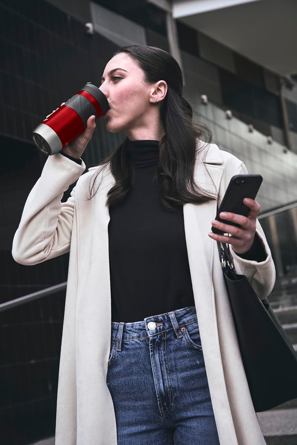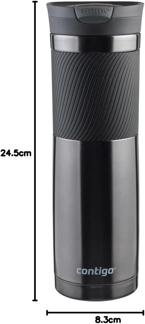 - IDEAL FIT: The thermal mug provides easy and convenient one-handed drinking for both left- and right-handed users, and fits most car cup-holders: Size: 8 x 8 x 25 cm; Capacity 720 ml; Weight 390 g