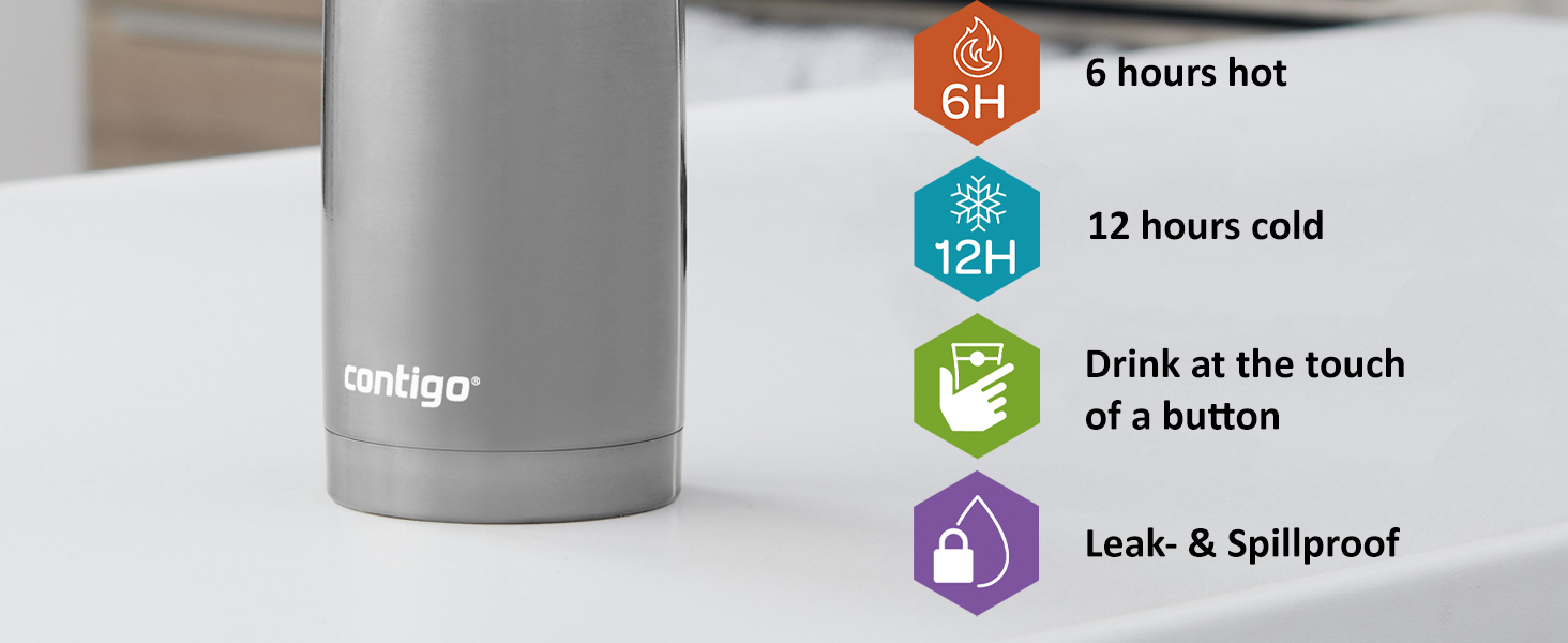 - ICE COLD OR PIPING HOT: Thermalock double-wall vacuum insulation keeps temperatures locked in for hours; drinks stay hot up to 9 hours or cold up to 21 hours, on the go, in the office or outdoors