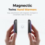 - Magnetic Hand Warmer: Meet UT3 Lite – it’s got these cool magnets that easily snap two hand warmers together, making it this neat little package you can take anywhere, making it an ideal small gift for men or women