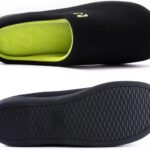 - Open back, slip-on style allows for easy on/off. The fitted upper and back lip help prevent your slipper from flopping off your foot, especially when walking down stairs.